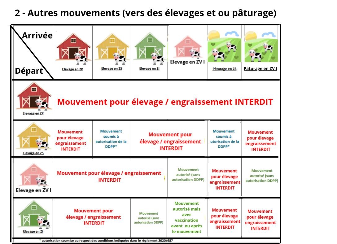 Vaccination massive, obligatoire et intégralement financée par l’État dans les zones réglementéesRespect strict des règles de biosécurité, incluant l’interdiction de mouvements ou le respect rigoureux des conditions dérogatoires.